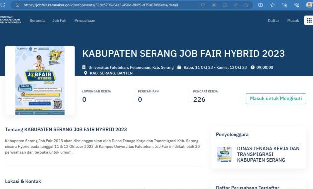 Tentang KABUPATEN SERANG JOB FAIR HYBRID 2023