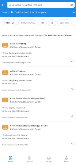 Apakah kamu tertarik untuk bergabung di CV Selera Nusantara (H! Cups)? Yuk segera lamar lowongannya di KitaLulus.